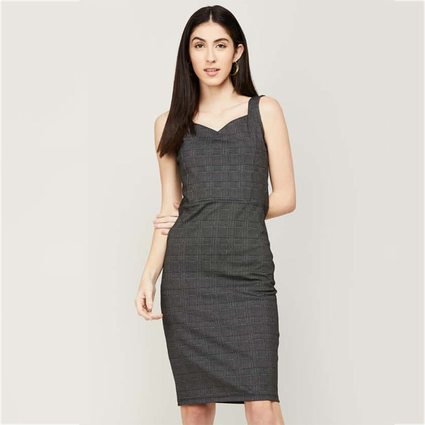 • Show your exceptional style with this bodycon dress, beautifully tailored with premium fabric, detailed with checkered print design, strap sleeves, diamond neckline, button closure, and amazing fit.